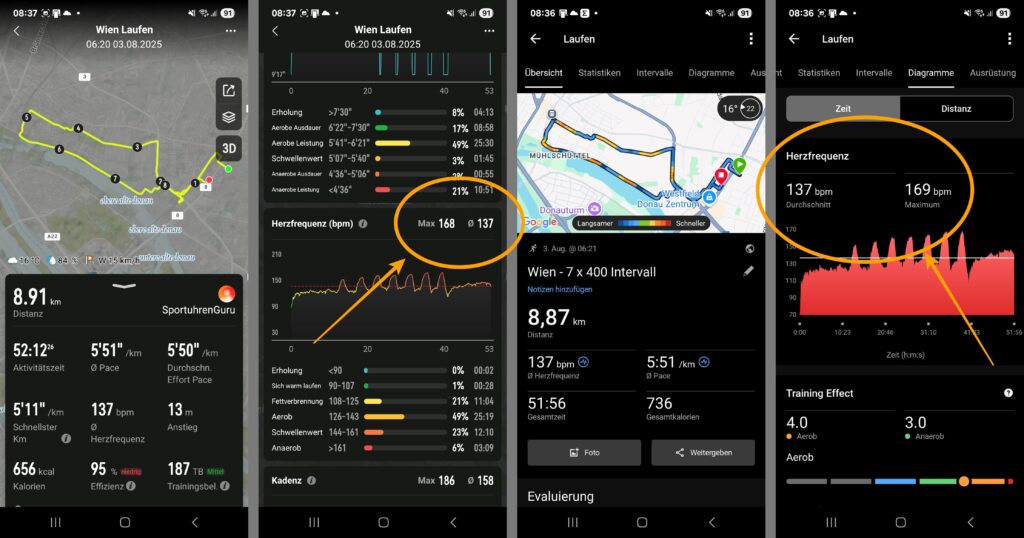 - Coros Nomad: Maximum 168 Schläge, Durchschnitt 137 Schläge