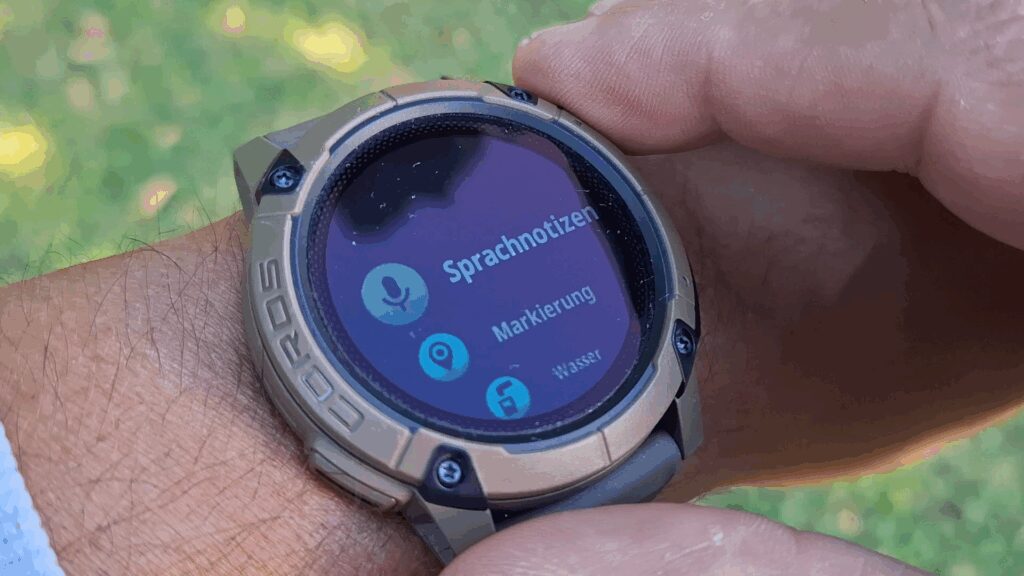 Die Sprachnotiz-Funktion ist eine der interessantesten Neuerungen der Coros Nomad. Die Nomad ist die erste Coros-Uhr mit integriertem Mikrofon (interessanterweise gibt es aber keinen Lautsprecher).