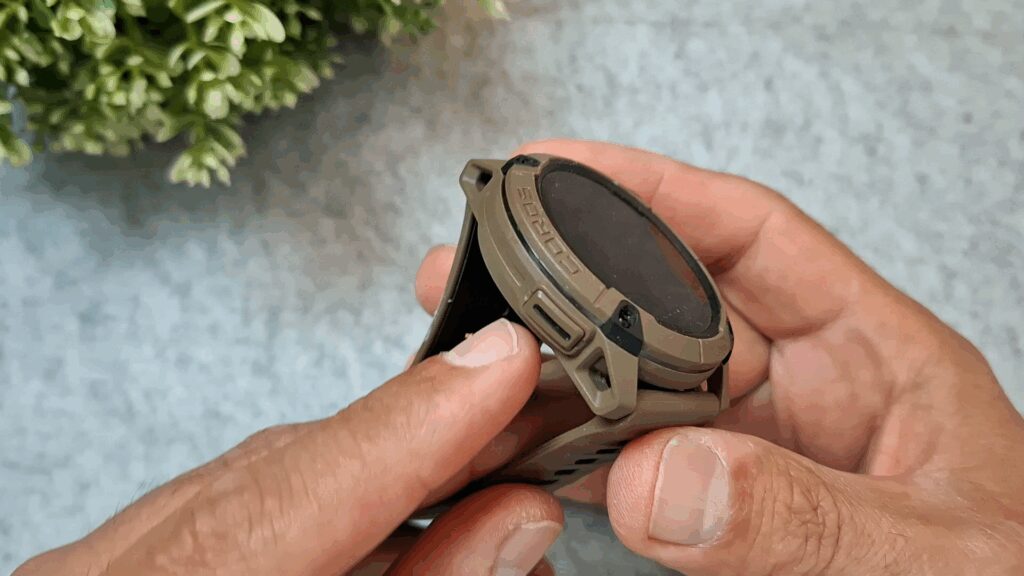 Die Coros Nomad präsentiert sich im ersten Coros Nomad Test-Eindruck als echte Outdoor-Uhr. Während andere Coros-Modelle wie die Pace Pro eher schlank und elegant wirken, kommt die Nomad in der typischen robusten Outdoor-Optik daher.