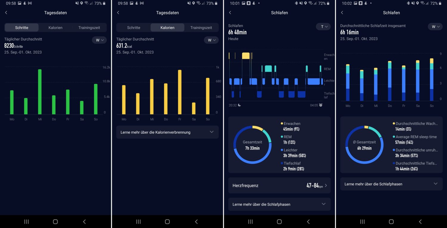 Was man auf der Uhr findet sind also die Basics, die ohnehin zur Standardausstattung einer modernen Smartwatch gehören. Konkret bietet die Pace 3 einen Schrittzähler, einen Kalorienrechner und eine Schlafüberwachung an. Darüber hinaus kannst Du manuell auch noch die Blutsauersättigung (SpO2) messen.