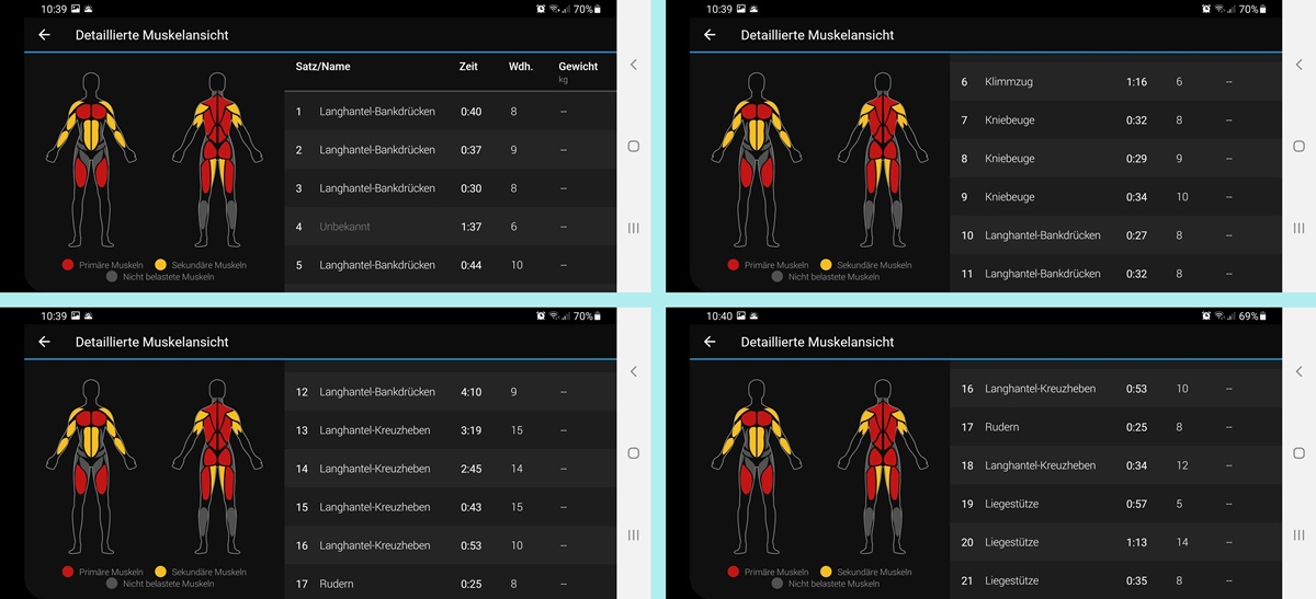 Die Anzahl der Sätze ist zwar richtig, aber das Erkennen der Übung klappt nur sporadisch und das Zählen der Wiederholungen funktionierte nur ganz selten.