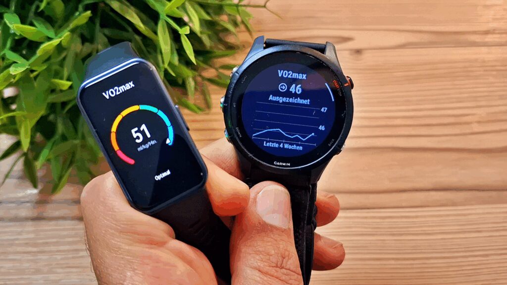 - Die VO2 Max (maximale Sauerstoffaufnahme) – anfänglich ist dieser Wert oft etwas zu hoch angesetzt, wird aber mit längerer Nutzung immer präziser