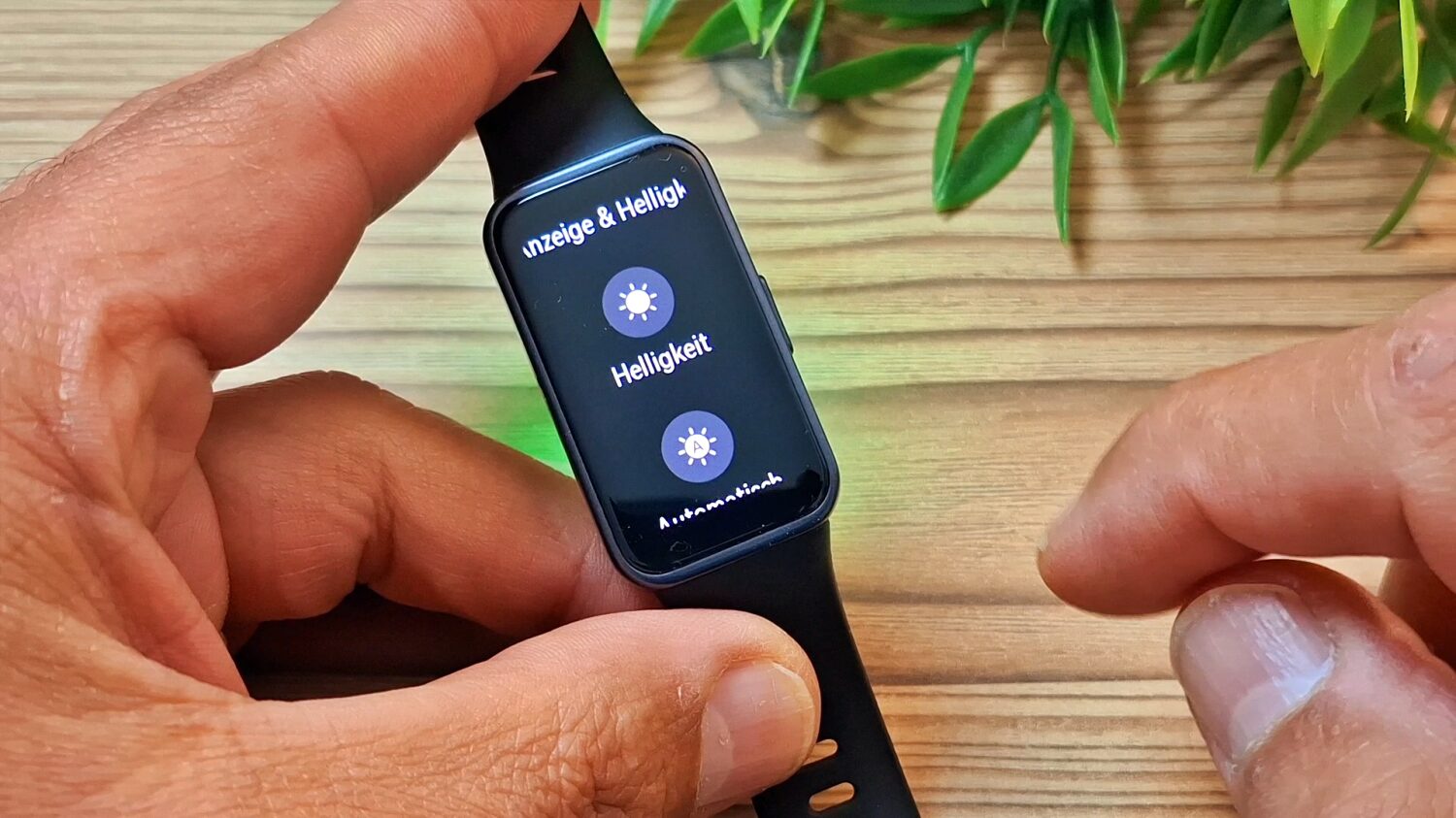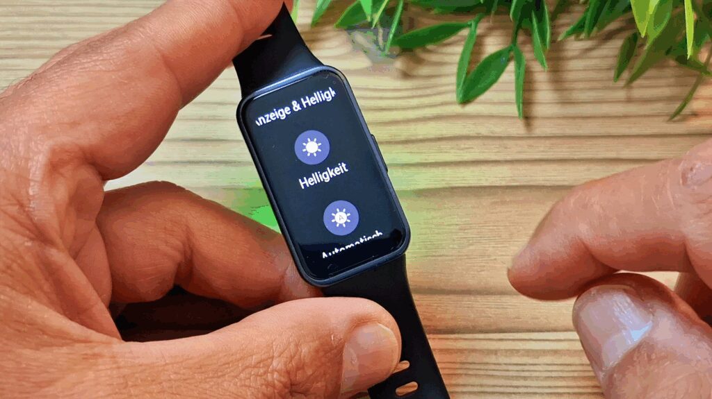 In den Einstellungen findest Du zunächst Optionen zur Bildschirmhelligkeit. Grundsätzlich wird die Helligkeit automatisch angepasst, da das Band 10 mit einem Umgebungslichtsensor ausgestattet ist. Du hast aber auch die Möglichkeit, manuelle Einstellungen vorzunehmen.