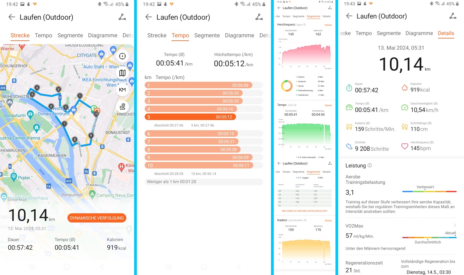 | HF durchschnittl. | 136 bpm | 136 bpm | 145 bpm | 144 bpm |