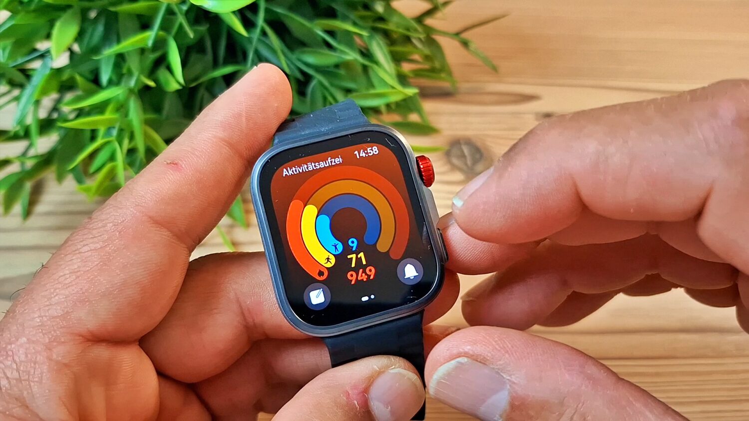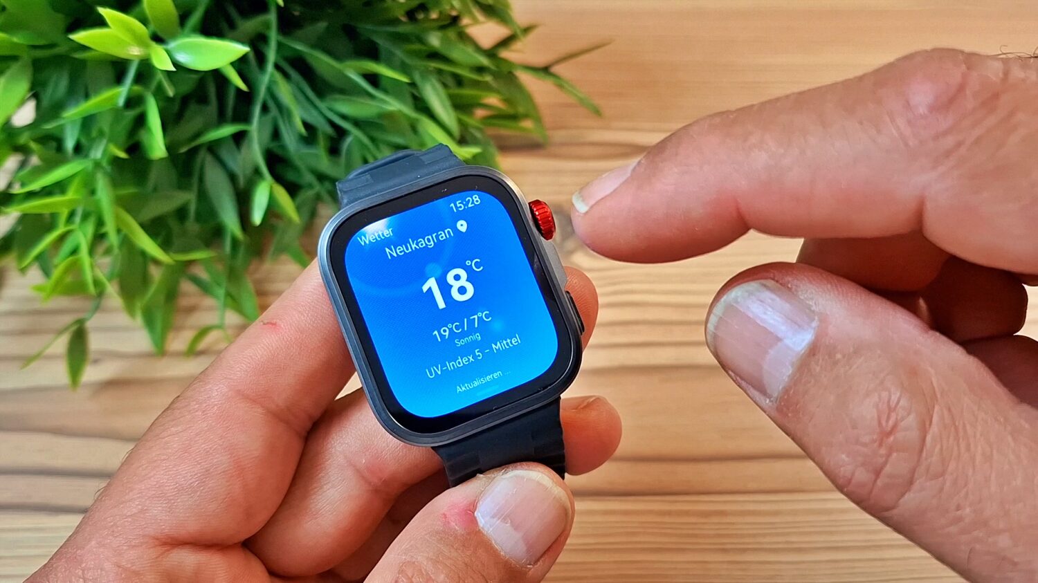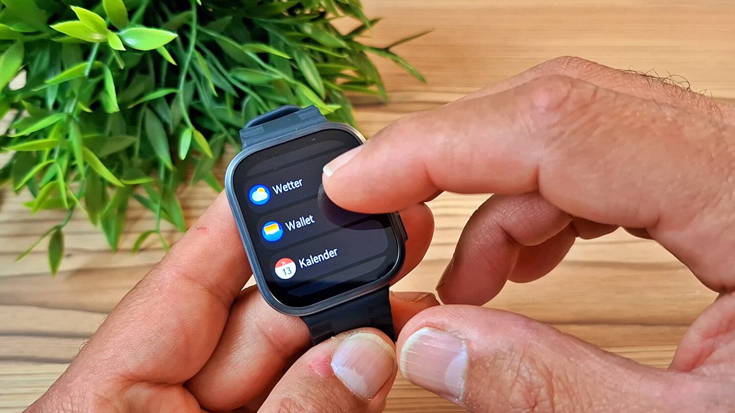 Zusätzlich verfügt die Uhr über eine drehbare Krone, mit der Du durch verschiedene Menüs scrollen kannst. Diese Funktion ist allerdings etwas eingeschränkt, da es beispielsweise nicht möglich ist, durch Drücken der Krone eine Funktion auszuwählen.