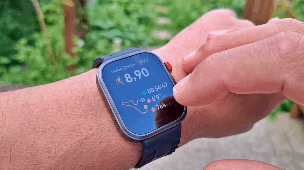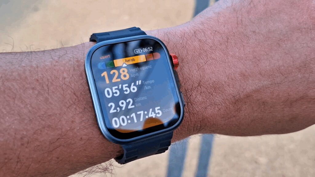 Unter diesen Bedingungen erreichte die Uhr tatsächlich eine beeindruckende Akkulaufzeit von rund 6 Tagen. Das ist zwar etwas weniger als die versprochenen 7 Tage, aber angesichts der intensiven Nutzung durchaus beachtlich und für die meisten Nutzer vollkommen ausreichend.
