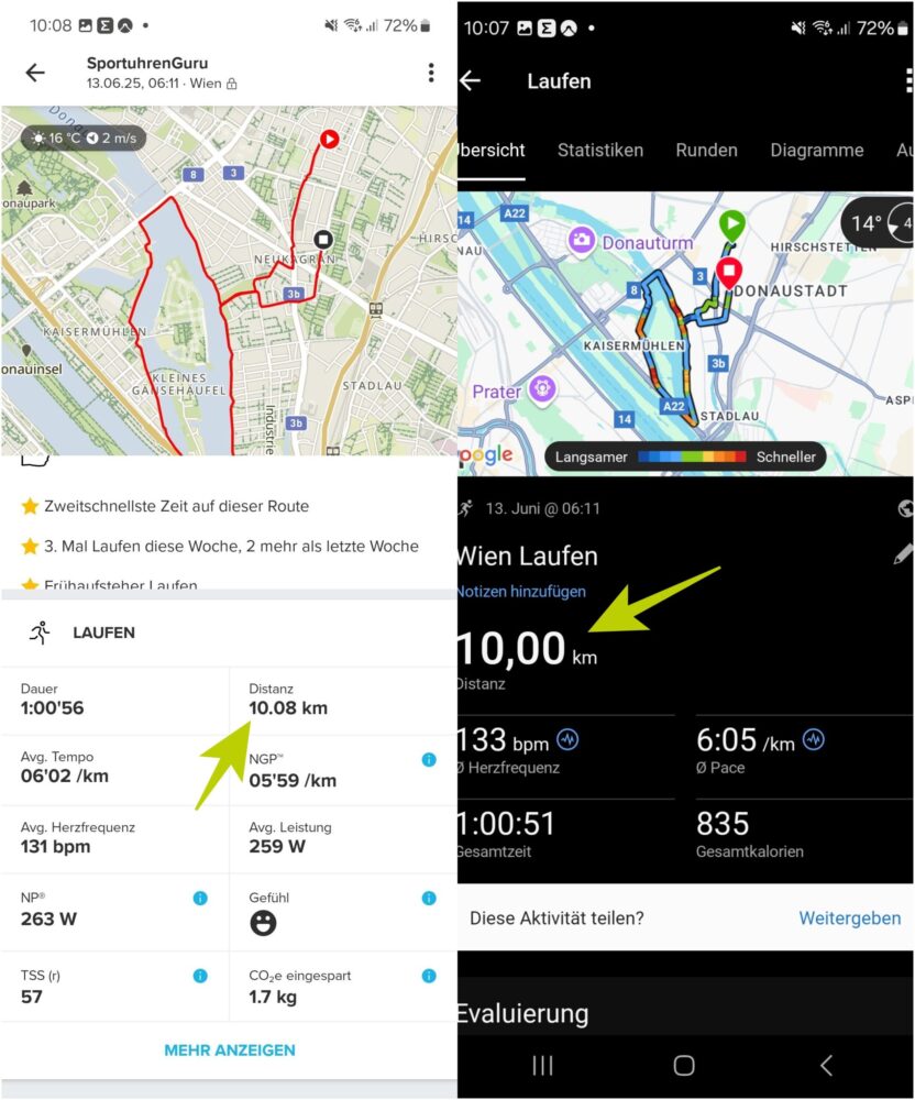 - Unterschied: Nur 80 Meter auf 10 km – völlig normal und vernachlässigbar