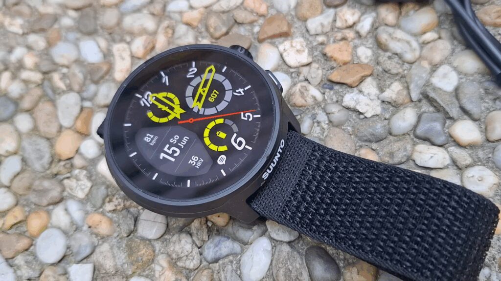 Die gute Nachricht: Du wirst dieses Ladekabel nicht allzu oft brauchen. Suunto stellt eine Akkulaufzeit im Smartwatch-Modus von bis zu 12 Tagen in Aussicht. Im Multiband-GNSS-Modus sind bis zu 20 Trainingsstunden möglich – das heißt, auch eine Ganztagsaktivität wie eine Fahrradtour oder Wandertour ist problemlos möglich.